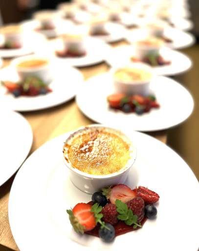 Bakad chokladpastej med salt karamellglass, rårörda hallon, rostad vit choklad & kolasås 95:- ~ Äppeltartlett med kanel & havrecrunch, rostad mandelglass 85:- ~ Creme brülé med färska bär 75:- ~ Smultronmoussekupol med vaniljpannacotta, färska bär & maräng 95:- ~ Rostad vit chokladglasskupol med kärna av hjortronsorbet, mandelflarn & vaniljhjortron 95:- ~ Wrångebäcksost , Sörmland ädel & Linnéa från Jürss mejeri Marmelad på björnbär & choklad. Hembakat fröknäcke 110:- ~ Sorbet på persika & champagne eller ert eget val av en kula sorbet eller glass med ett flarn 55:-